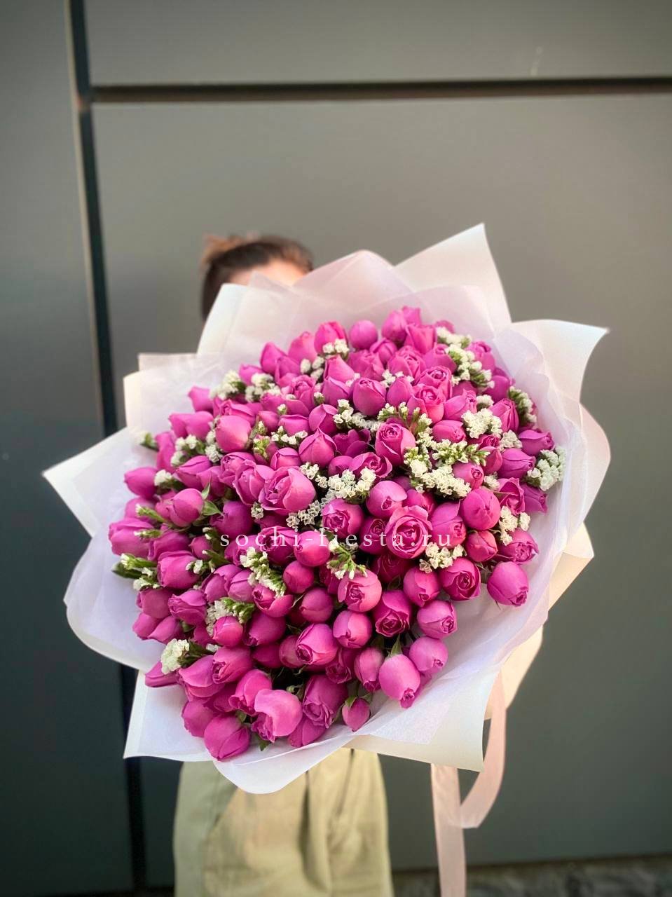 Мы работаем только со свежими цветами — букеты радуют от 7 до 14 дней и дольше при правильном уходе.