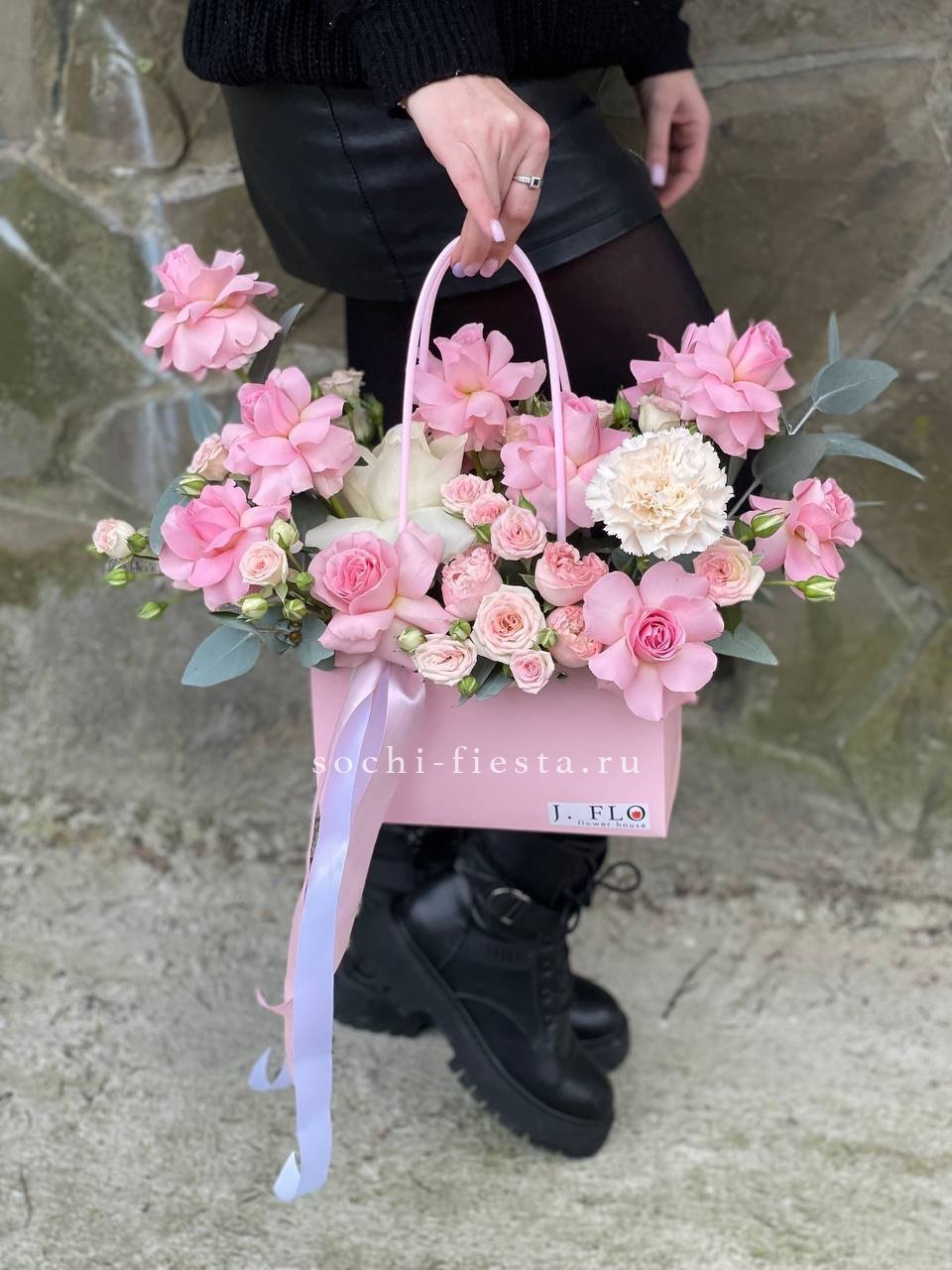Для заказа товара "Цветочный бокс "Эсмиральда"" с доставкой в Брянске нажмите в корзину