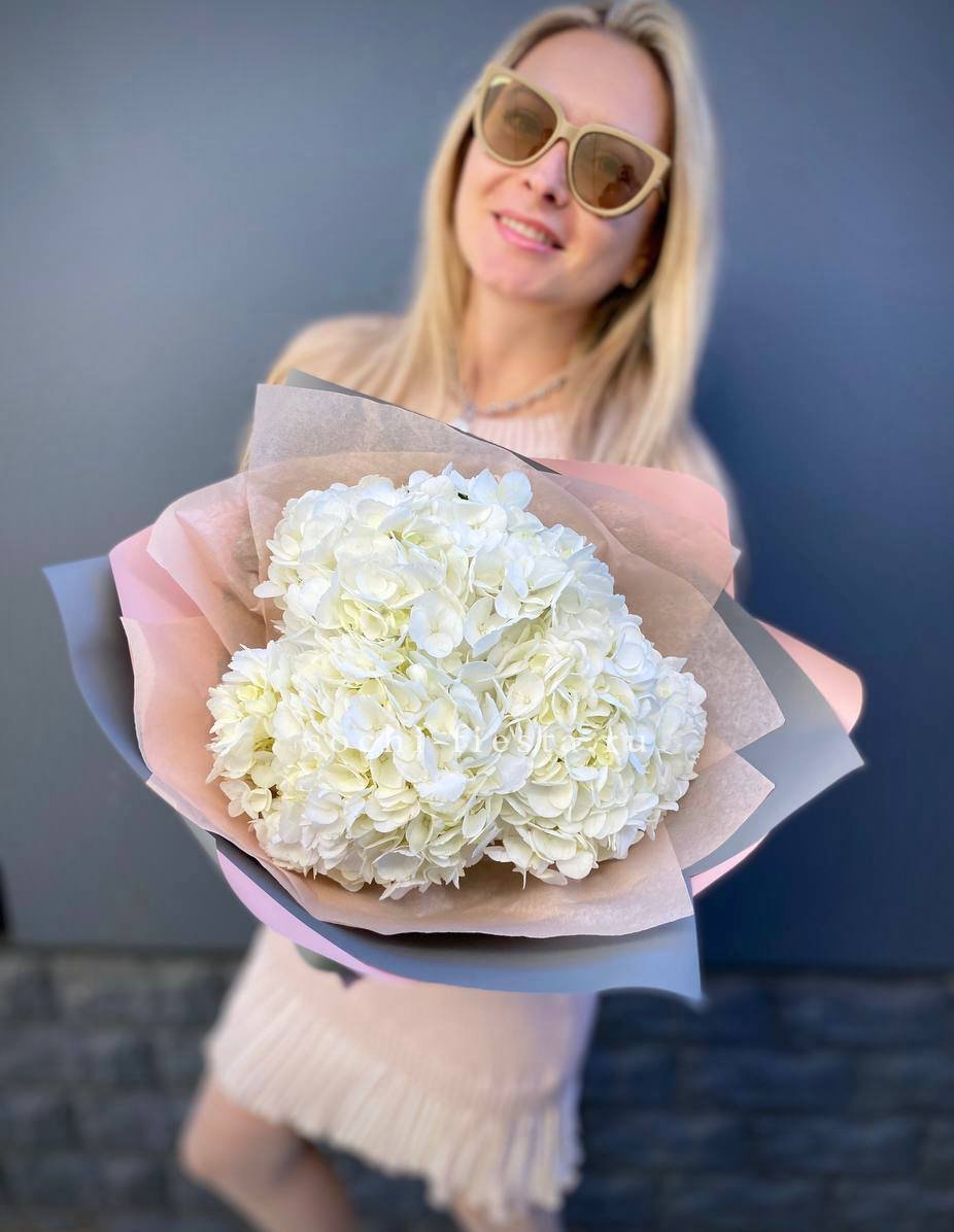 Для заказа товара "Букет из трёх белых гортензий" с доставкой в Брянске нажмите в корзину
