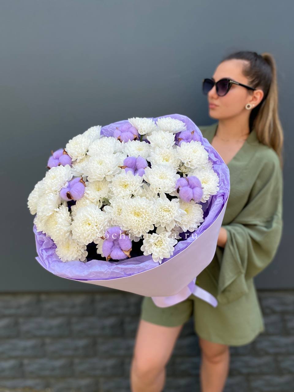 Для заказа товара " Букет хризантем и хлопка" с доставкой в Брянске нажмите в корзину