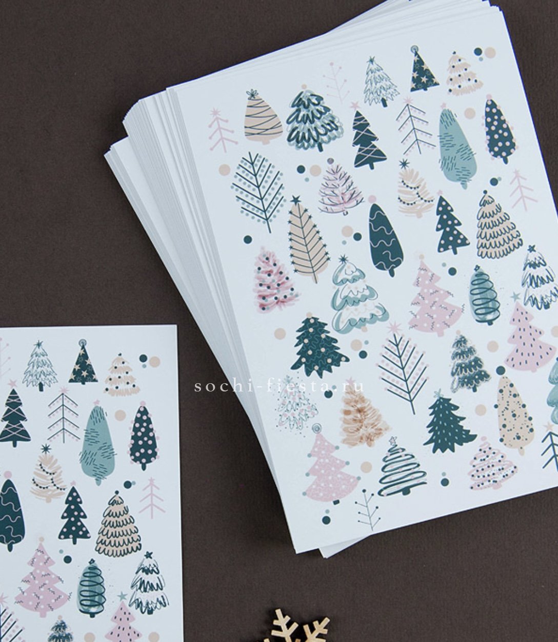 Праздничный дизайн с зимними ёлками и пространством для личного послания. Внутри можно разместить текст из нескольких строк, который дополнит впечатление от момента.