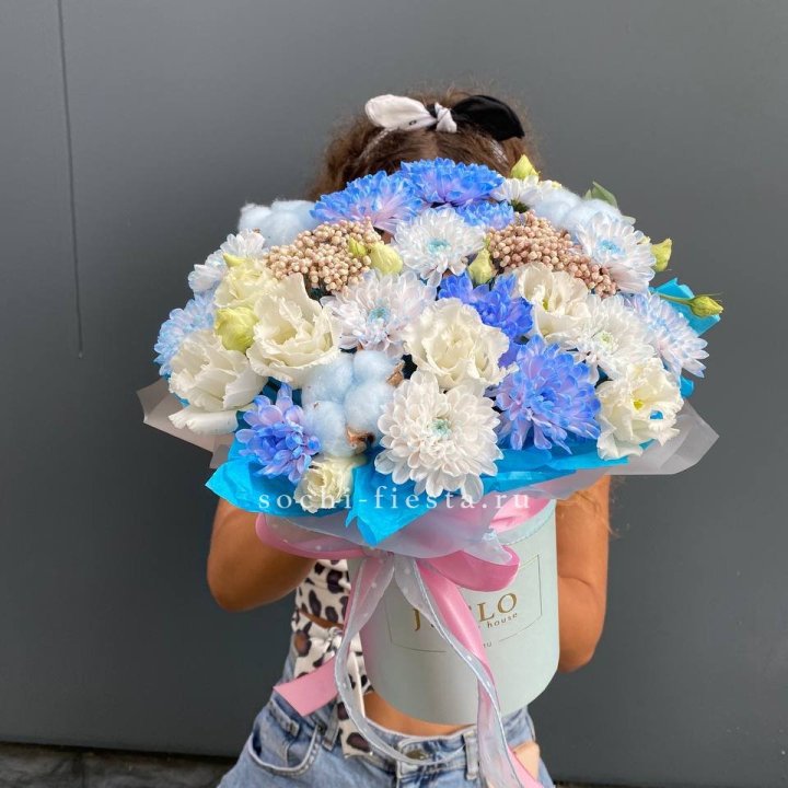 Наполнение подбирается под сезон. Зимой — амариллис, розы, ранункулюсы. Весной — тюльпаны, ранункулюсы, фрезия. Летом — пионы в мае-июне, гортензия в июле-августе. Осенью — хризантемы и декоративные травы.
