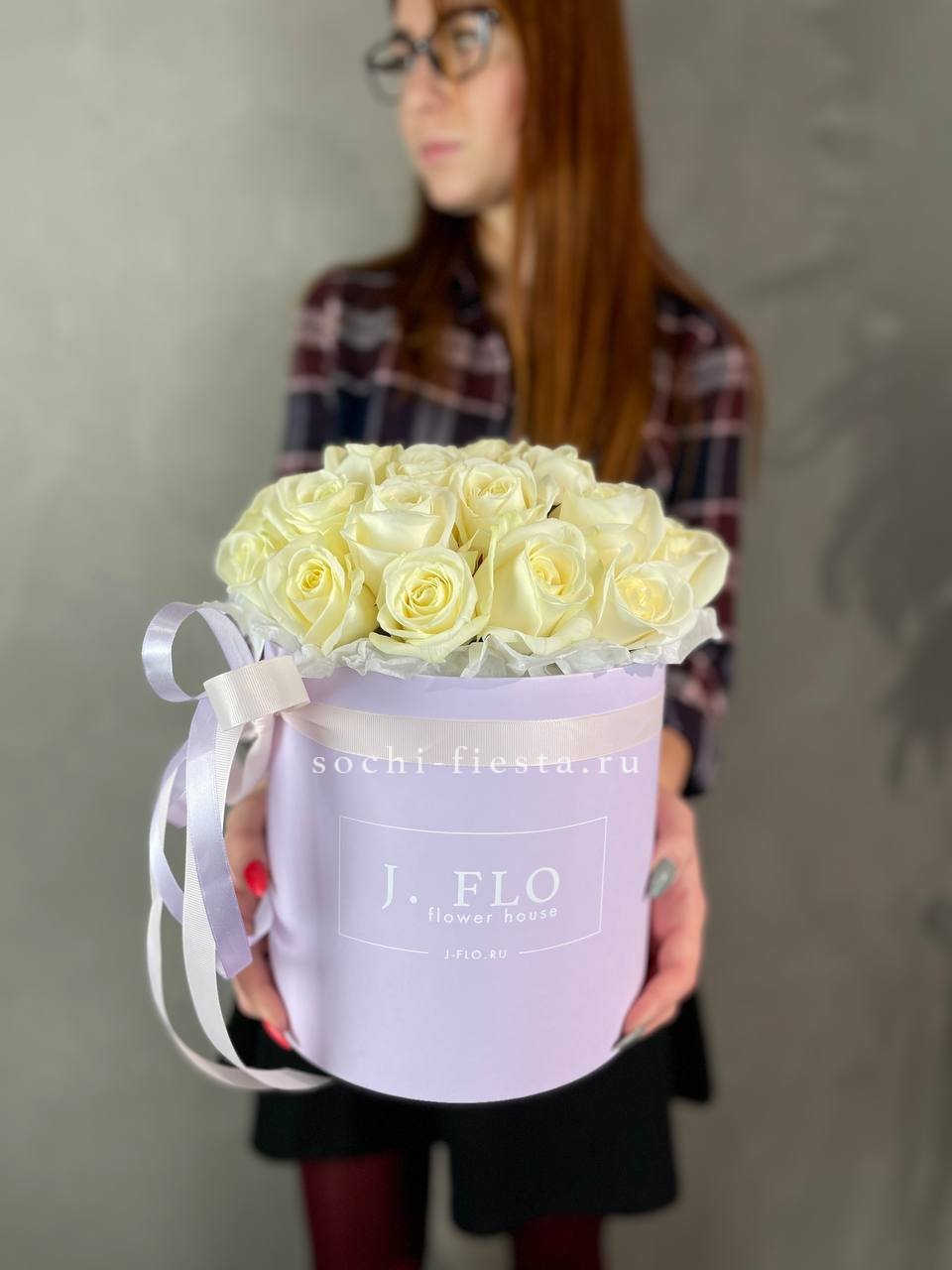пионовидные кустовые розы, эвкалипт, лимониум, зелень, лента, цилиндр D16.