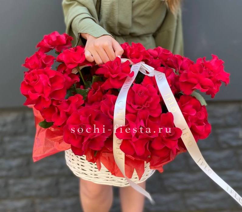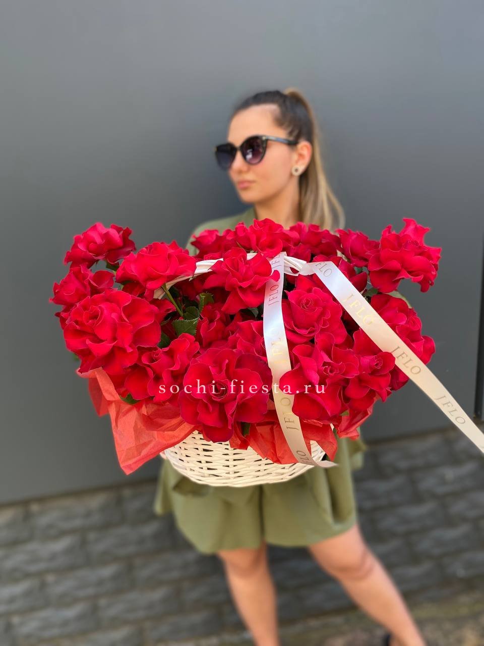 Для заказа товара "Красные французские розы в корзине" с доставкой в Брянске нажмите в корзину