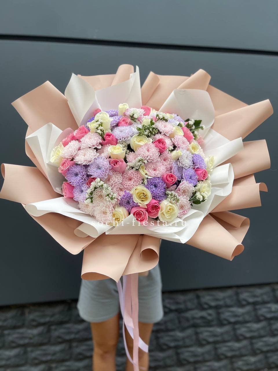 Мы работаем только со свежими цветами — букеты радуют от 7 до 14 дней и дольше при правильном уходе.