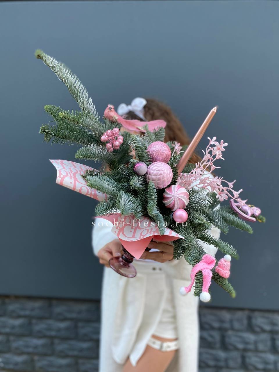 нобилис, бокал, оазис, свечи, новогодние игрушки, декор ВНИМАНИЕ! Готовая композиция (декор) может иметь незначительные внешние отличия от примера на фотографии.