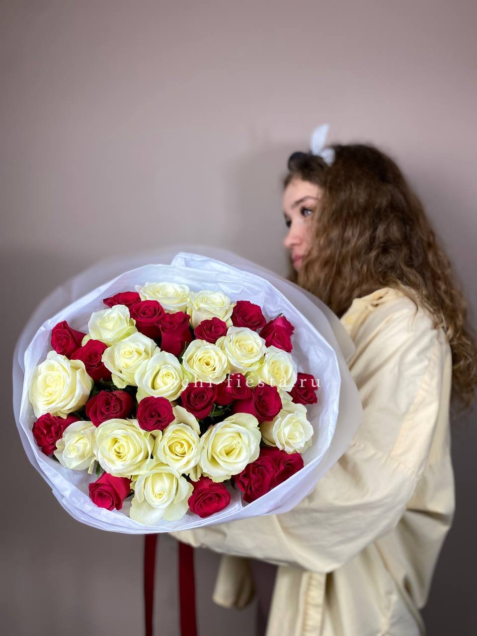 Для заказа товара "Букет из красных белых 35 роз" с доставкой в Брянске нажмите в корзину