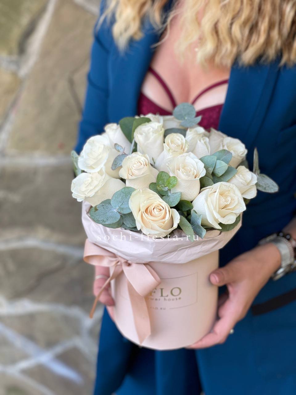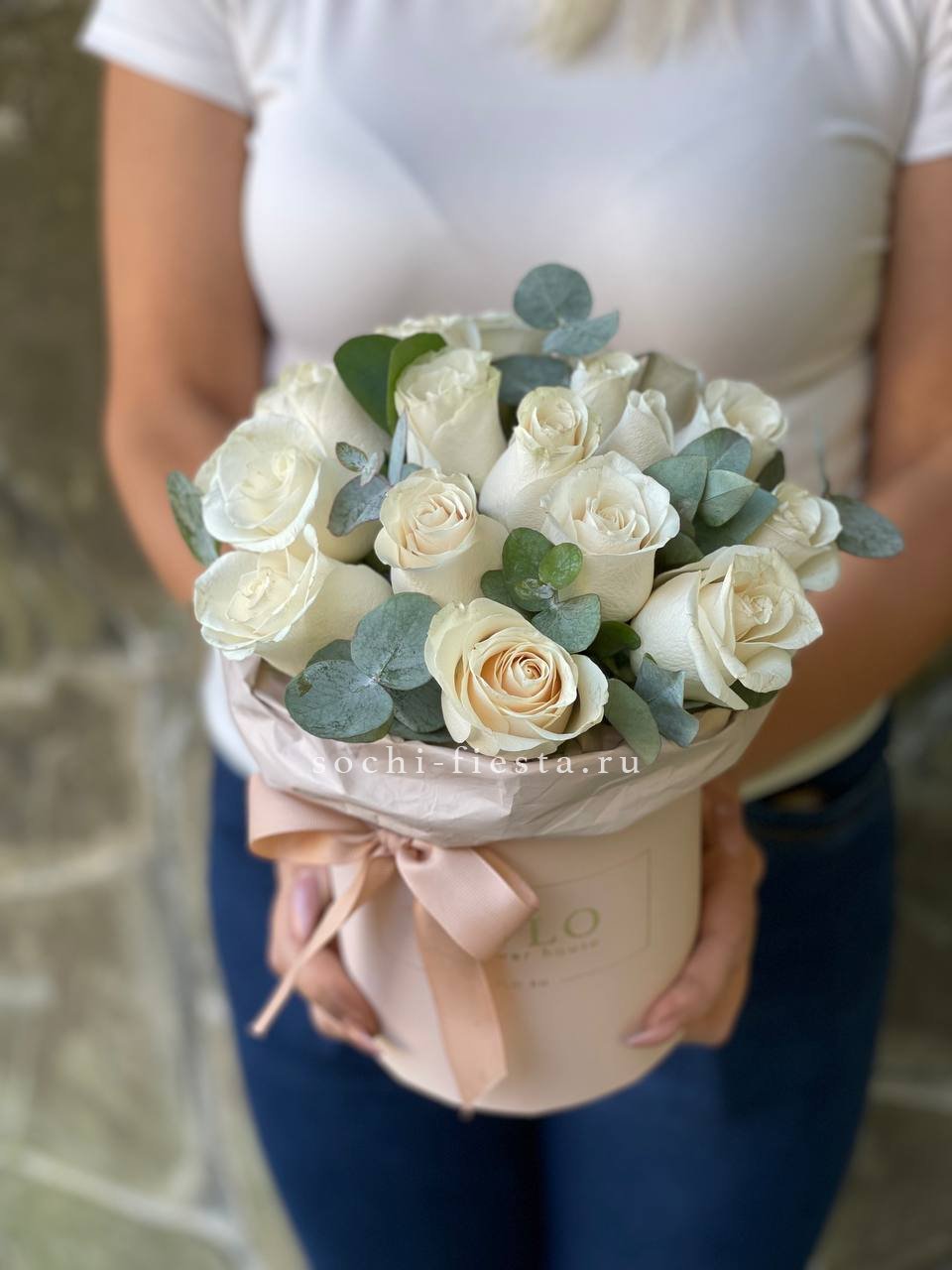 Цилиндр из белых роз