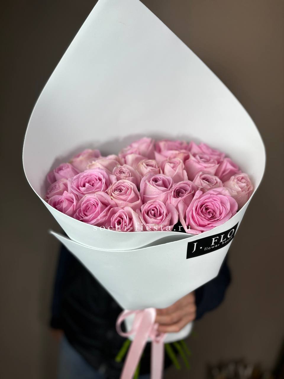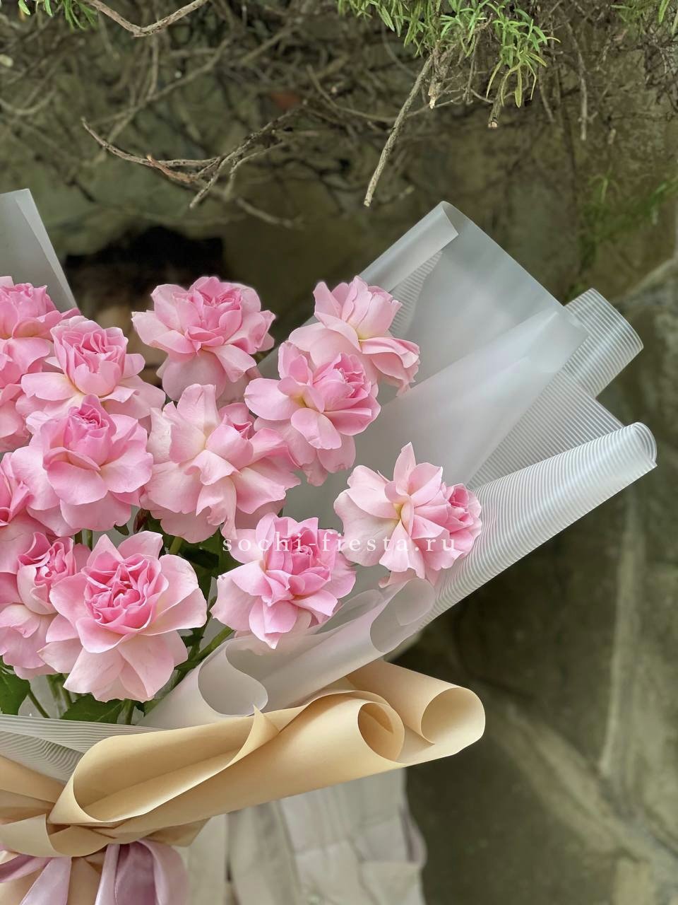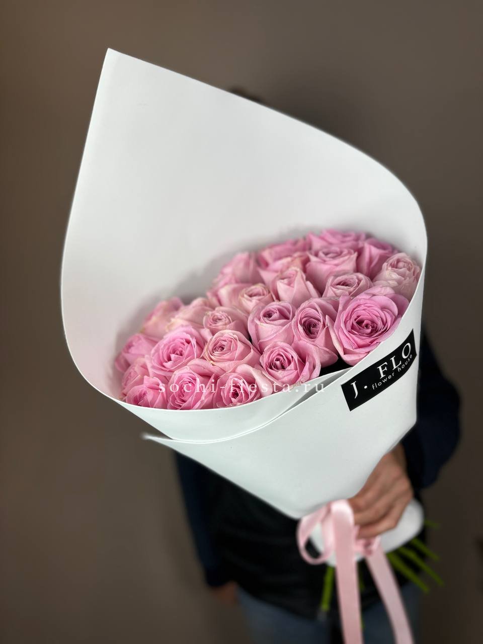 розовые розы - количество на выбор, авторская упаковка, лента.