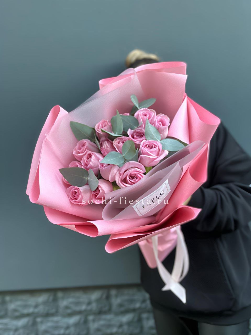 Для заказа товара "Розовые розы в авторском оформлении" с доставкой в Брянске нажмите в корзину