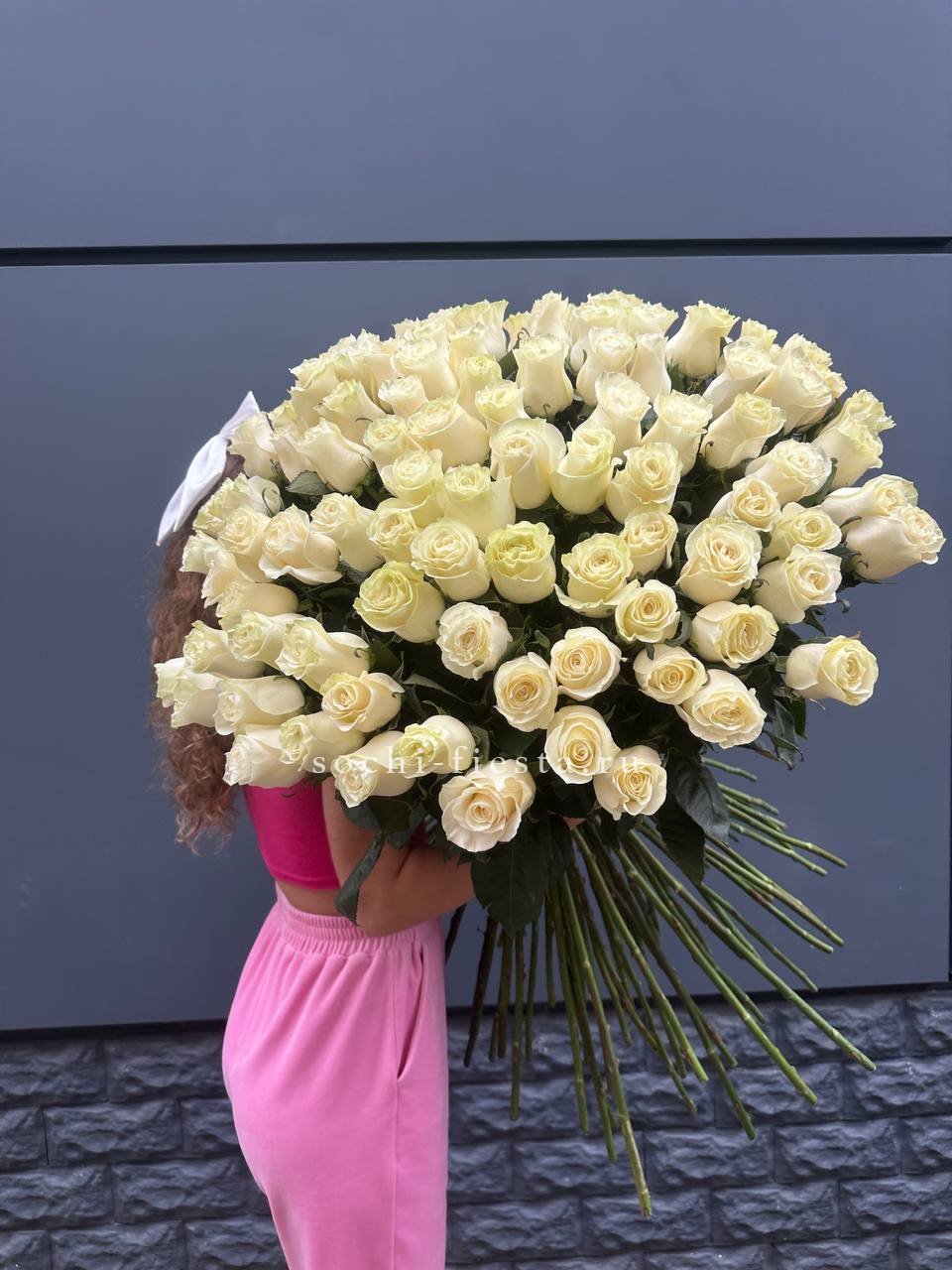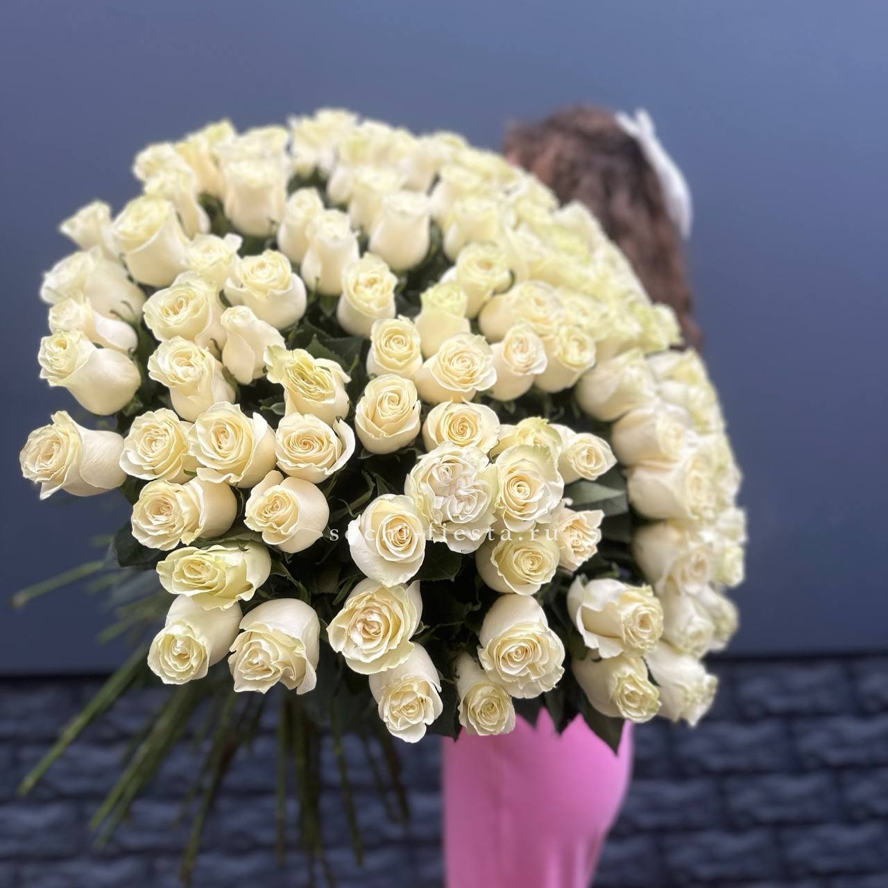 Сто одна голландская роза сортов Фридом или Эксплорер впечатляет длиной стеблей и крупными бутонами. Глубокий винный оттенок и безупречная геометрия каждого цветка. Масштаб, который чувствуется.