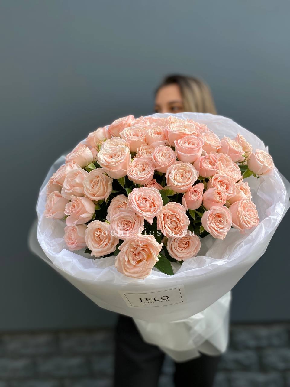 Пятьдесят один бутон сорта Бомбастик с густомахровыми лепестками кремового оттенка. Плотная сборка создает впечатляющий объем и заполняет пространство. Монобукет для тех моментов, когда важен масштаб.