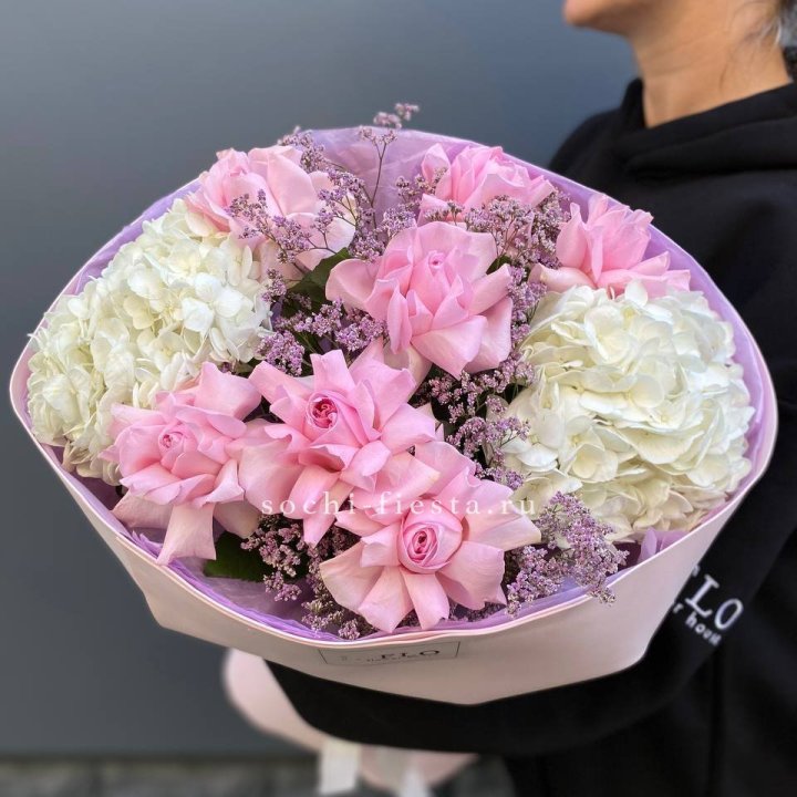 Зима и лето в Брянске — розы и хризантемы как основа. Эти виды стабильны в поставках круглый год. Флорист дополняет их сезонными акцентами: хвойные ветви зимой, открытая эустома летом. Сборный букет в любое время года выглядит живым и актуальным.