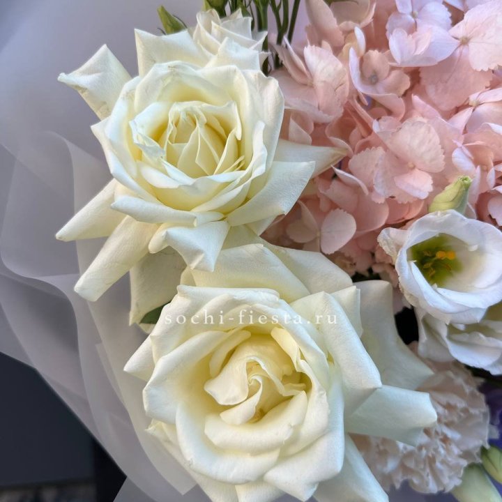 Зима и лето в Брянске — розы и хризантемы как основа. Эти виды стабильны в поставках круглый год. Флорист дополняет их сезонными акцентами: хвойные ветви зимой, открытая эустома летом. Сборный букет в любое время года выглядит живым и актуальным.