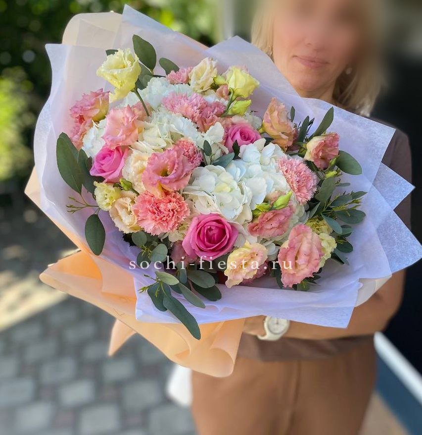 Букет кустовые розы и гортензия