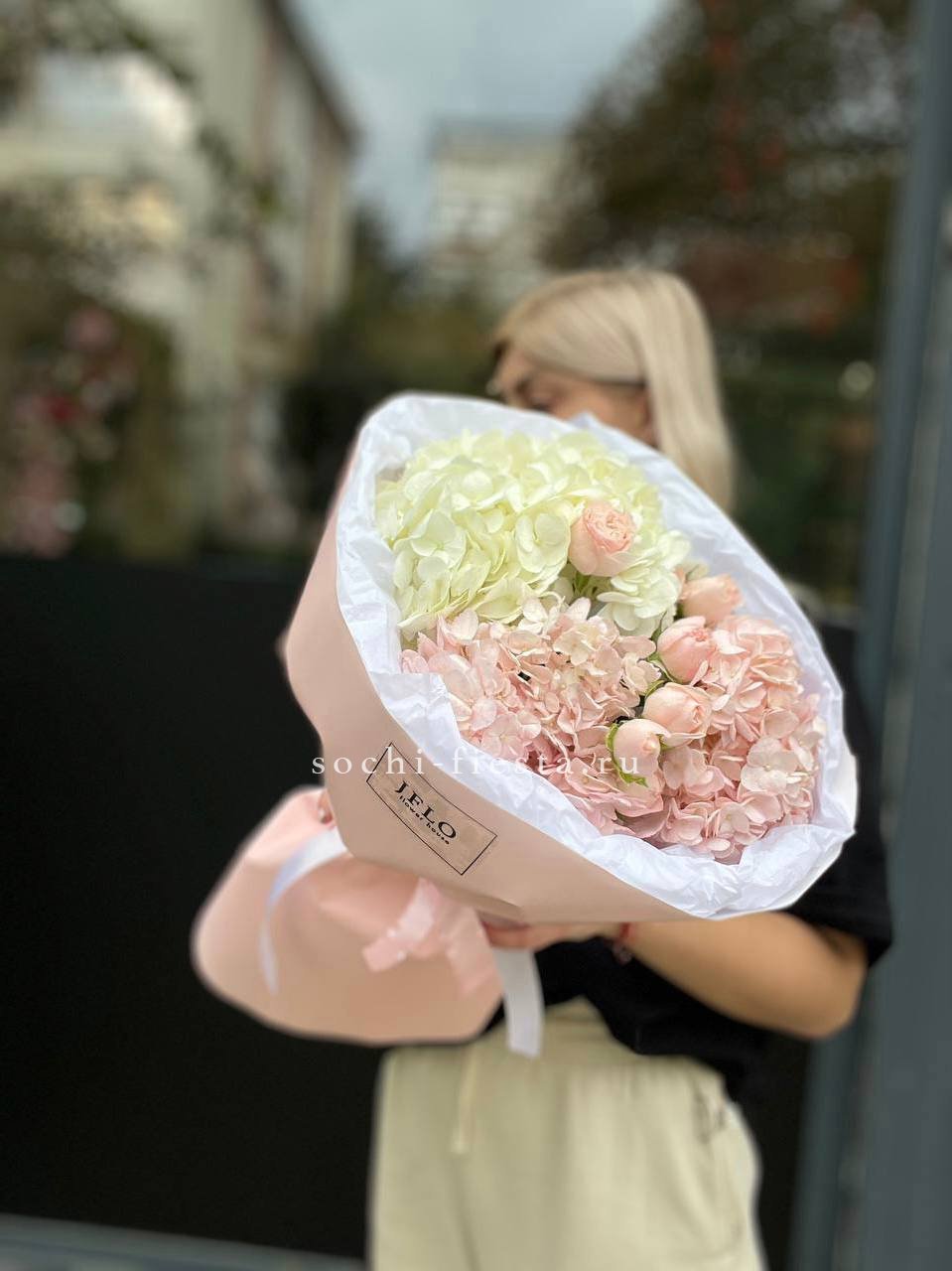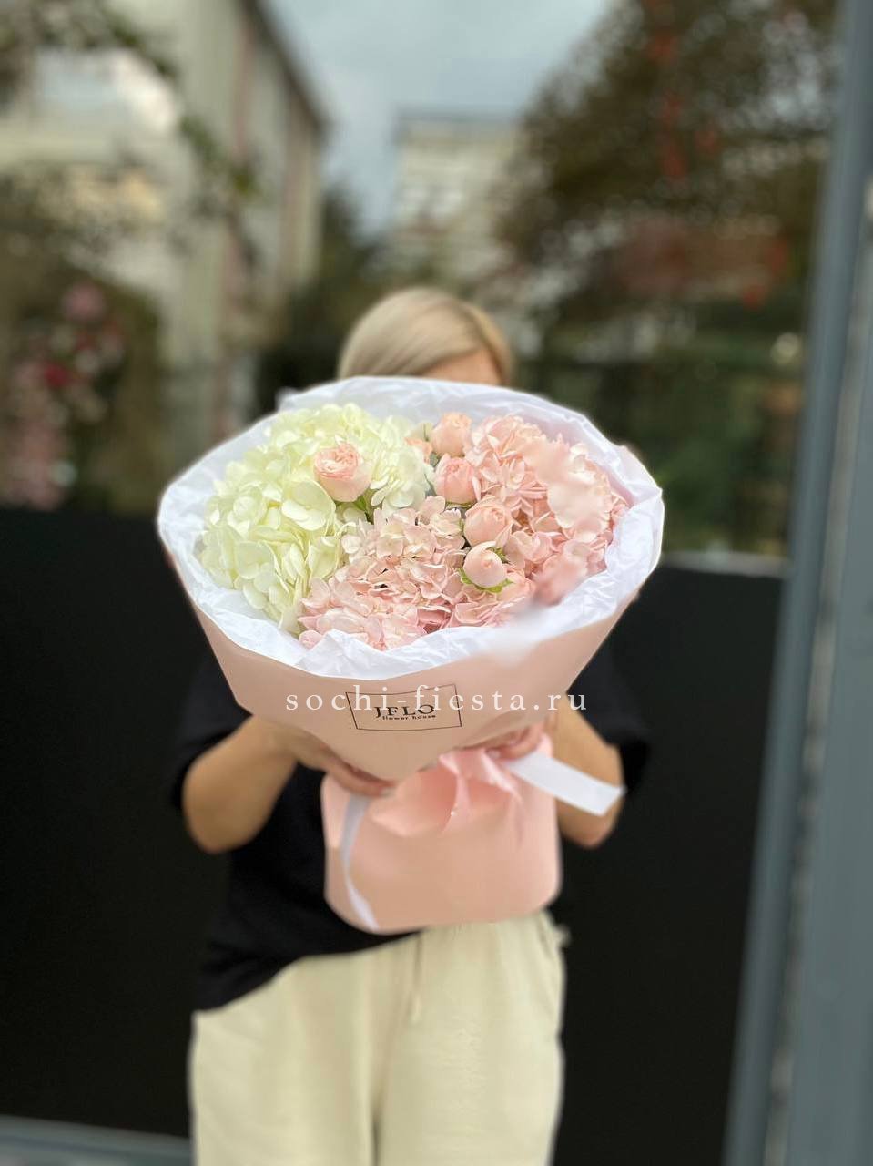 Для заказа товара "Букет роз, гортензии, гербер " с доставкой в Брянске нажмите в корзину